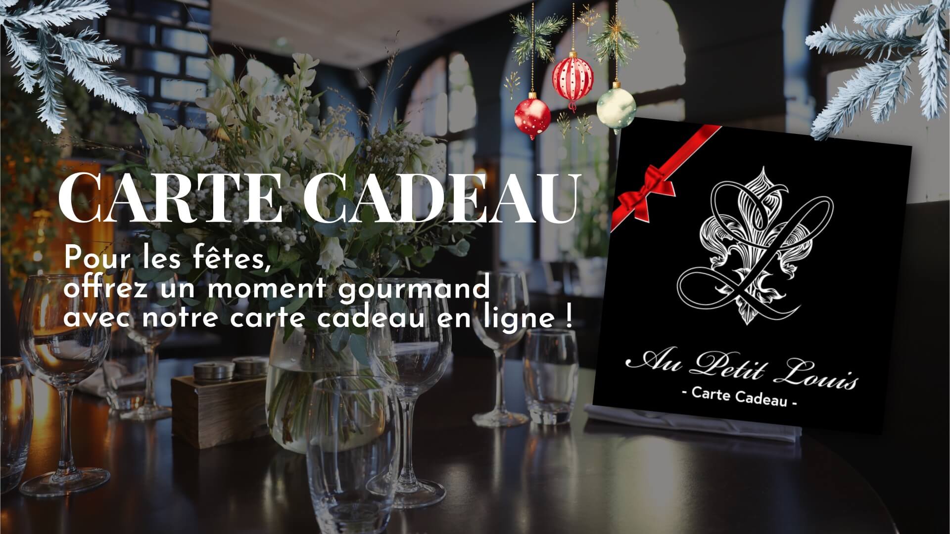 La carte cadeau en ligne du restaurant Au Petit Louis est désormais disponible sur notre site. En quelques minutes, vous offrez un moment qui restera dans les mémoires.