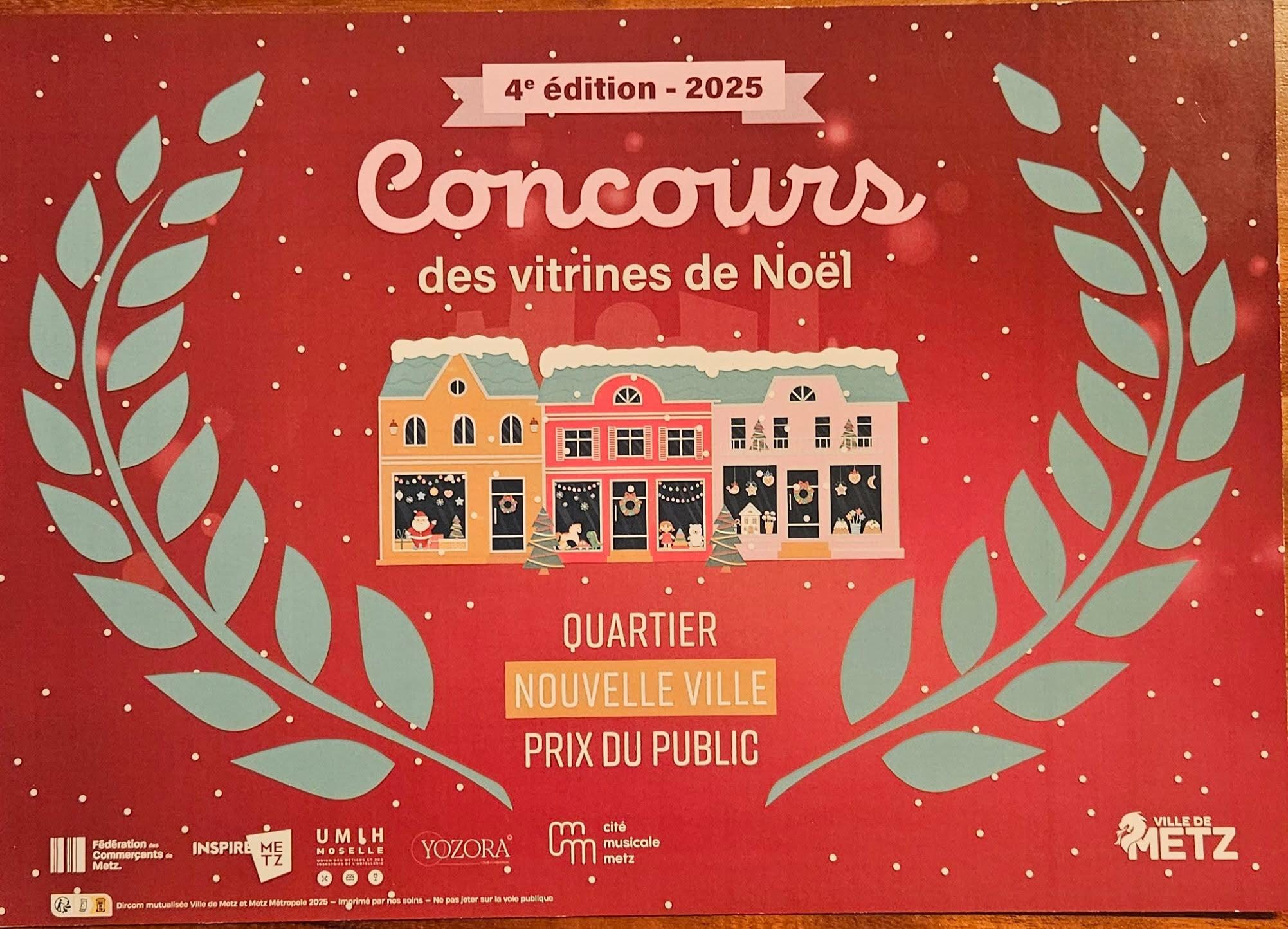 Nous sommes très heureux et honorés d’avoir remporté le Prix du Public lors de la 4e édition du Concours des vitrines de Noël à Metz, dans le quartier Nouvelle Ville.